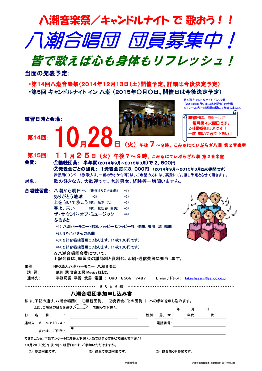 八潮合唱団団員募集&10月練習日(10月28日)案内です!