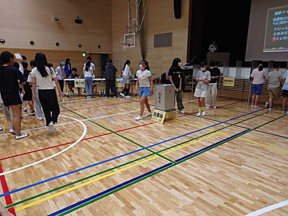天気 晴れ 6年生ということもあり投票の手順を説明しているときはきちんとした姿勢で聞いていました。また、選挙についてのクイズになると元気よく答え、楽しみながら学んでいました。質疑応答では時間が足りなくなるほど児童からたくさんの質問がありました。