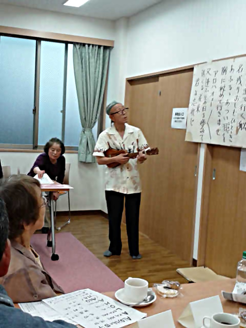 「ミニカルチャー」では、猪狩定男さんにウクレレ演奏とALOHAの哲学のお話をいただきました。「倖せはここに」「ハワイアンパラダイス」の伴奏と歌、ハワイの先住民の「ALOHAの哲学」を学びました。