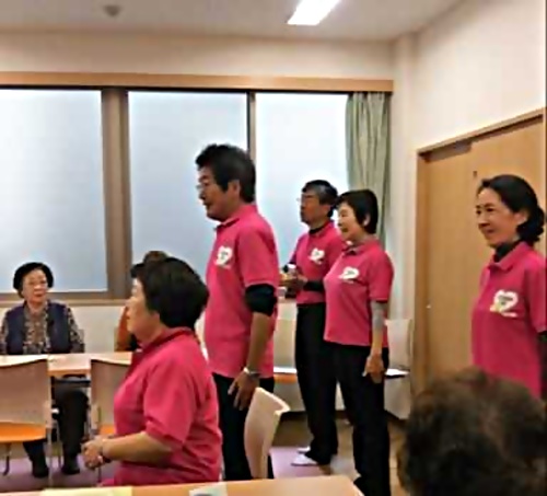 秋山さんのお札のマジック、山本さん扮する森繁久彌の「ラマンチャの男」もあり、「秋を歌おう」では、上島さんのハーモニカの伴奏で、「リンゴの唄」などなつかしい歌を、参加者の皆さんで歌いました。
