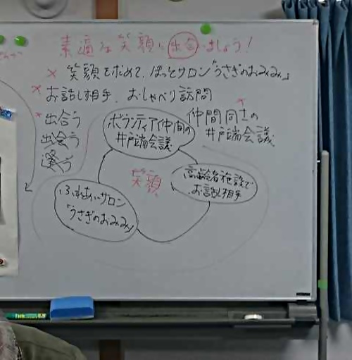 その後、本日の主要テーマ①10月16日「うさぎのおみみ」おかげさまで第100回!!の準備 ②男女共同参画センター30周年記念ポスター製作 ③12月以降の「うさぎのおみみ」ミニカルチャーのスケジュール、等について活発な討議を行いました。