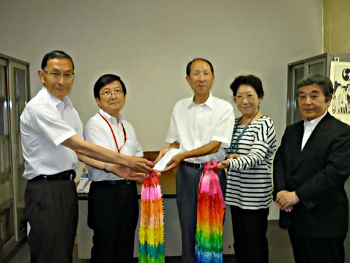 私たちは、7月18日午前11時、品川区社会福祉協議会・木下徹事務局長に「東北復興支援の一助に」と義援金164,142円を手渡しました。左から清田副会長、木下事務局長、村川会長、櫻井幹事、叶会計長。