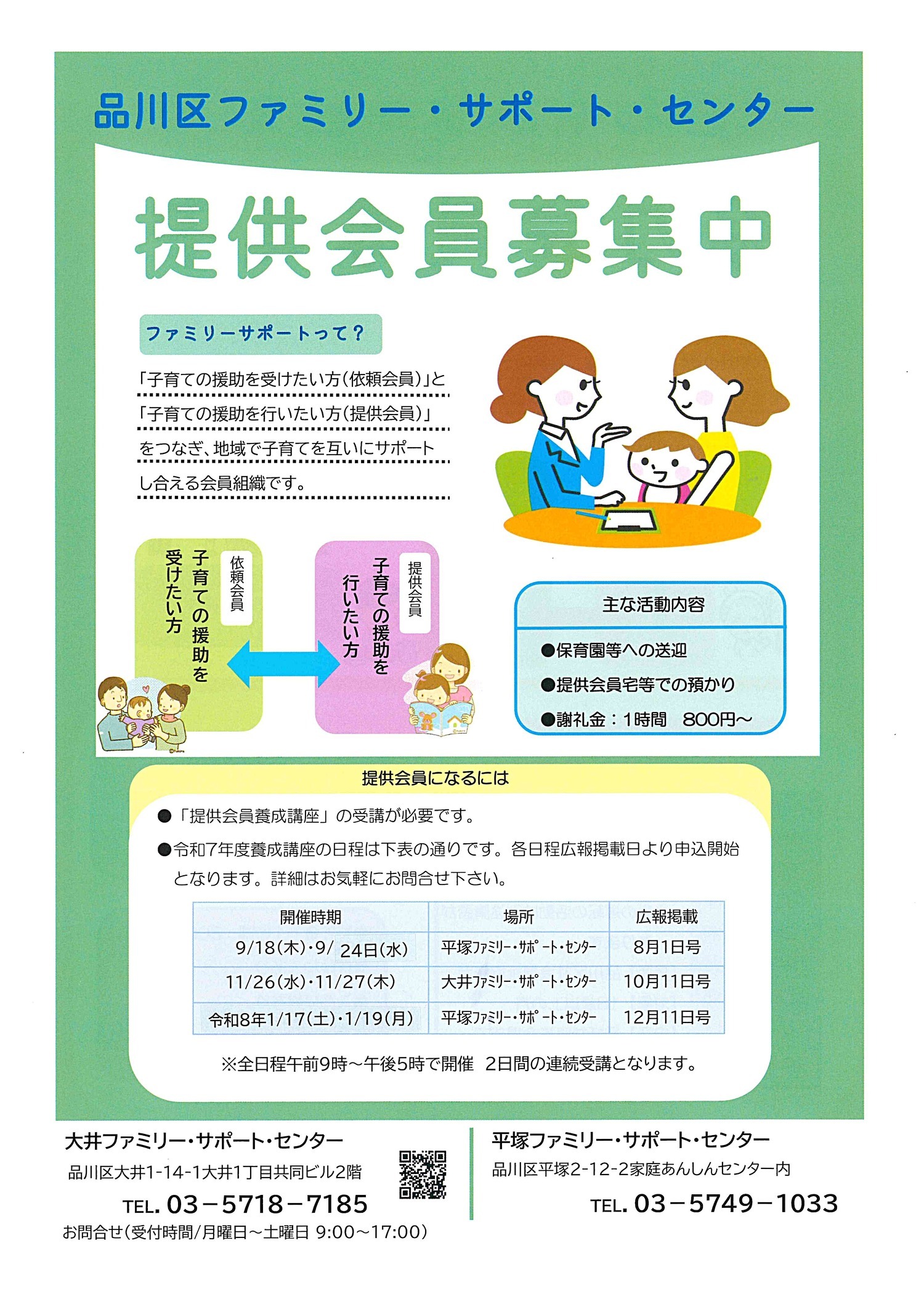 申込方法:申込み専用フォーム、電話か往復はがき、FAXにて申込。講座名、住所、氏名(ふりがな)、年齢、性別、電話番号、受講動機を書いて社会福祉協議会ファミリー・サポート養成講座担当まで
