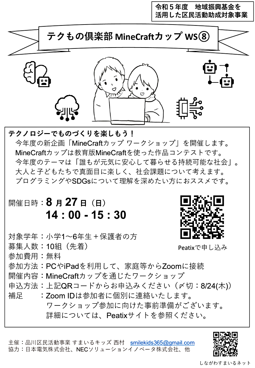 今年度の新企画「MineCraftカップ ワークショップ」を開催します。
