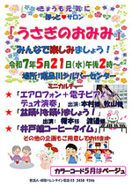 『うさぎのおみみ』開催! 令和7年5月21日(水)午後2時から 於:南品川シルバーセンター ☆ミニカルチャー「エアロフォン&電子ピアノ~デュオ演奏」ほか。