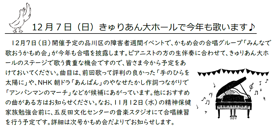 (10月前半 練習メニュー創立記念大会用練習 ダブルス練習) 10月03日(金) 練習会 1500-1730 戸越体育館 10月06日(月) 練習会 1500-1730 総合体育館 10月10日(金) 練習会 1200-1430 総合体育館、1430-総会 10月13日 (月) 練習会 会場無し (10月後半 練習メニュー ツッツキ打ち(フォアとバックサイド)) 10月17日(金) 練習会 1300-1630 東品川文化センター 創立記念大会 10月20日(月) 練習会 1300-1630 東品川文化センター 10月24日(金) 練習会 1200-1430 戸越体育館 10月27日(月) 練習会 1500-1730 総合体育館 10月31日(金) 練習会 0900-1130 総合体育館 (11月前半 練習メニュー レシーブ及び4球目攻撃練習) 11月03日(月) 練習会 1300-1630 東品川文化センター 11月07日(金) 練習会 1200-1430 総合体育館、1430-月例会 11月10日(月) 練習会 1200-1430 総合体育館 11月14日(金) 練習会 1300-1630 東品川文化センター (11月後半 練習メニュー サービス及び3球目攻撃練習) 11月17日(月) 練習会 1300-1630 東品川文化センター 11月21日(金) 練習会 1200-1730 総合体育館 11月24日(月) 練習会 1300-1630 東品川文化センター 11月28日(金) 練習会 0900-1130 戸越体育館<競技会>