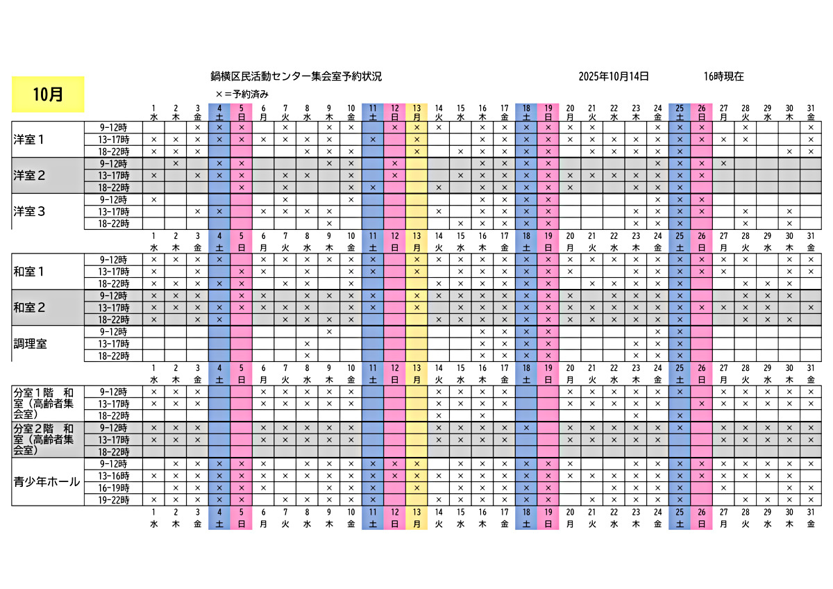 16時以降、予約やキャンセル等で変更になった場合は反映されていません。