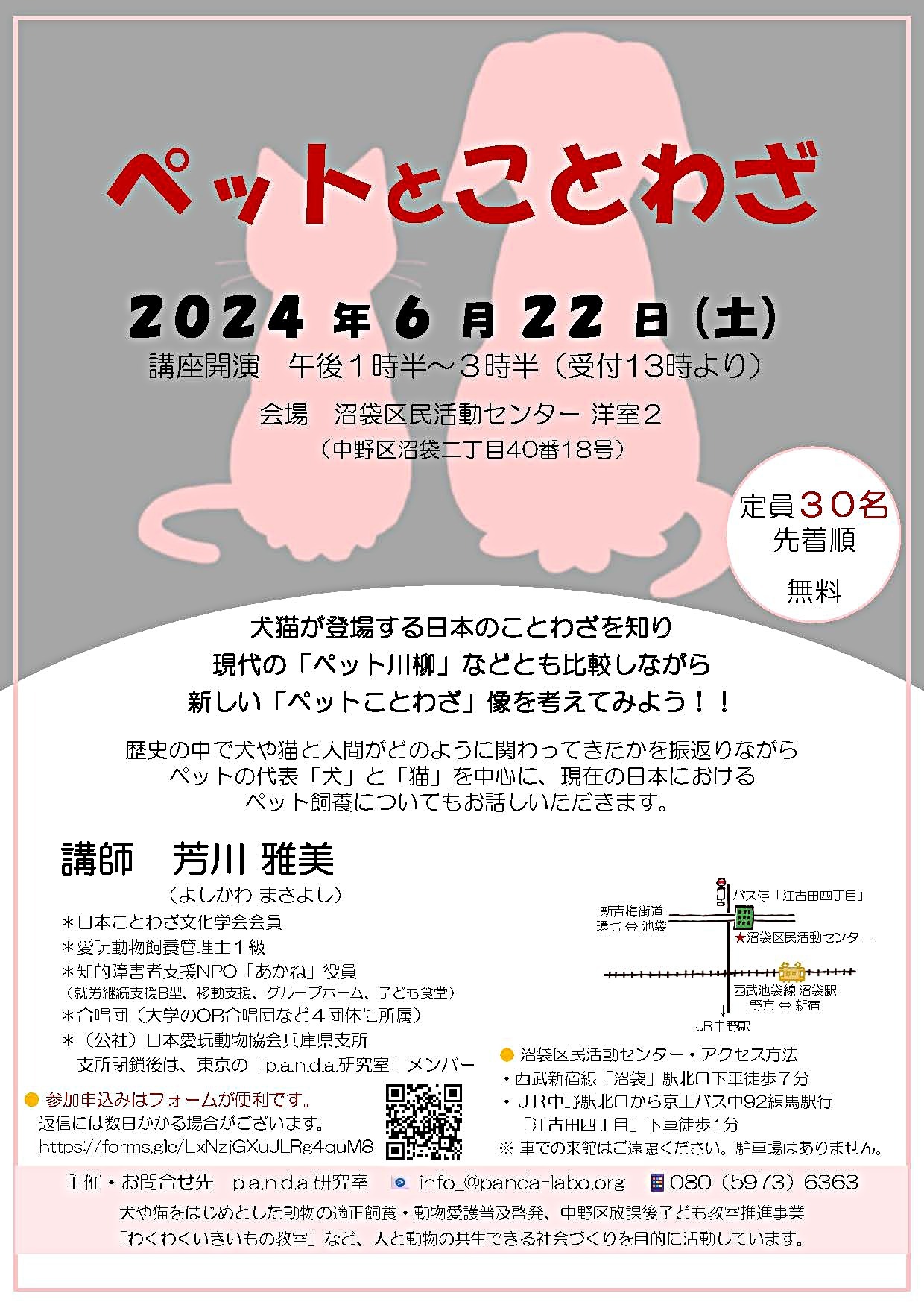 動物が登場することわざやペット川柳のお話しをしていただきます。