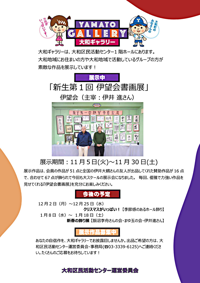 大和ギャラリーは、大和区民活動センター1階ホールにあります。