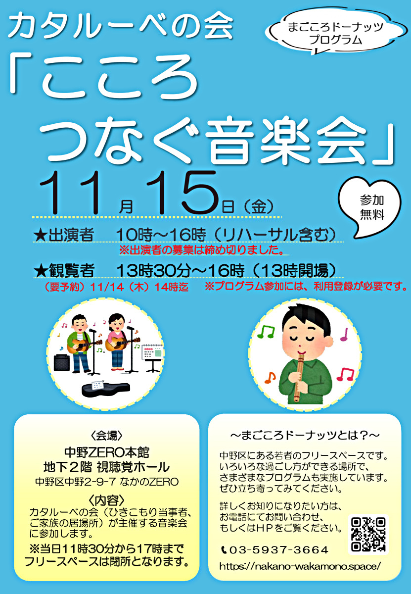 参加にはフリースペースの利用登録が必要になります。当日現地では登録手続きができないため、事前にまごころドーナッツにて登録手続きをお願いいたします。
