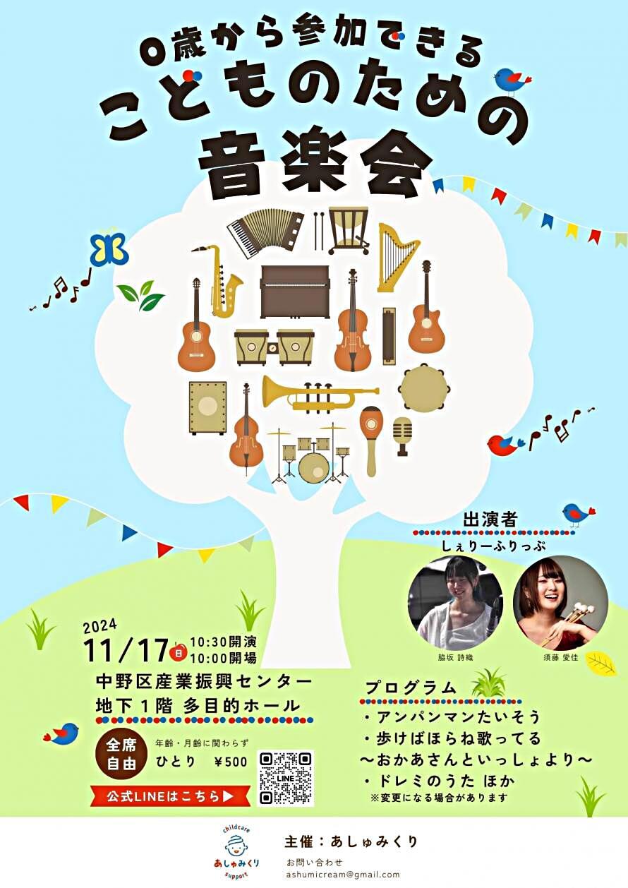 毎月1回おこさまと一緒に楽しめる音楽会を開催しています。(11:30ごろ終了予定)