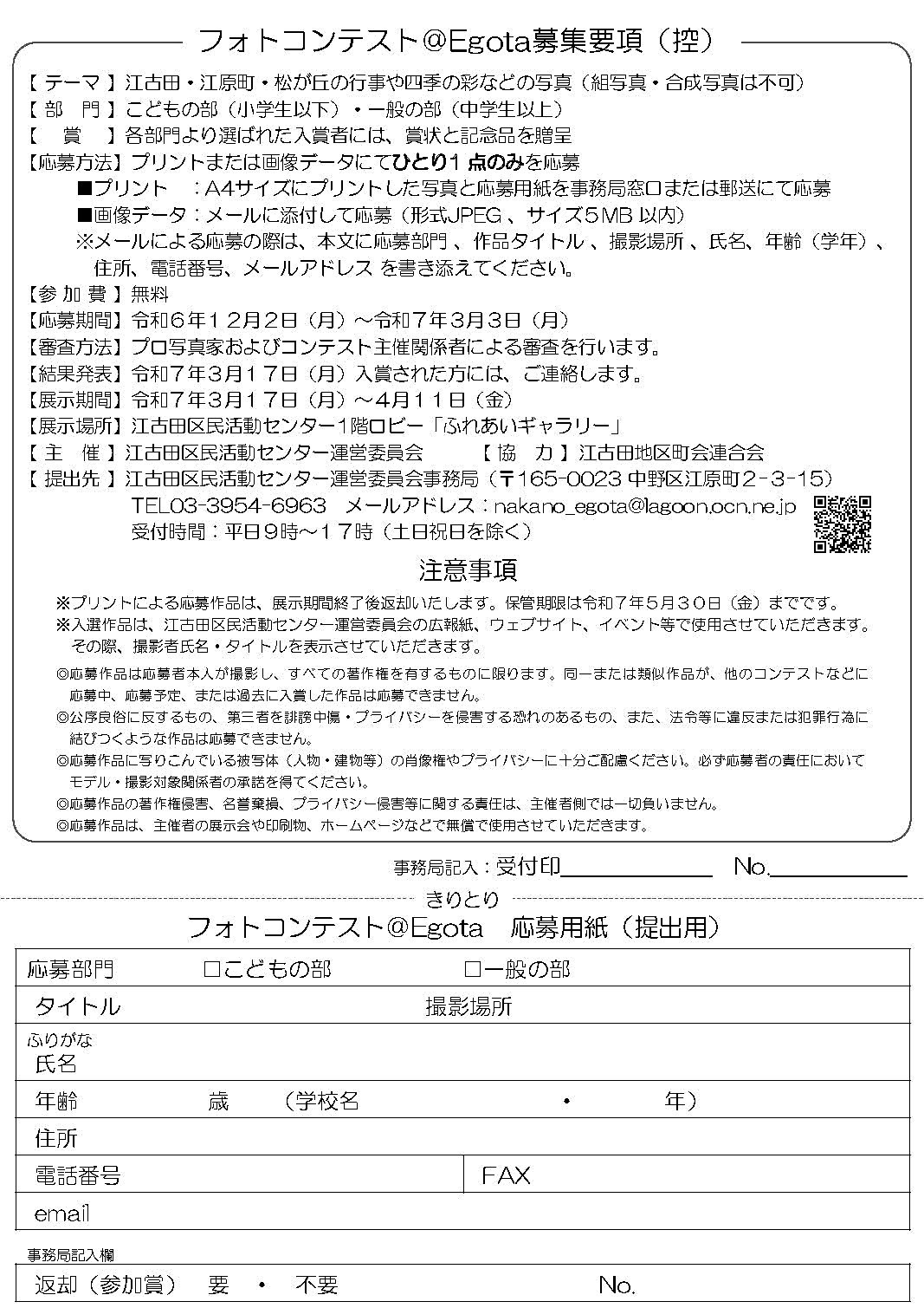 江古田地区(江古田・江原町・松が丘)のベストショットをお待ちしています!