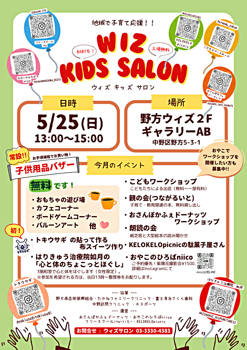 5月のウィズキッズサロンは、5月25日(日)に開催します。