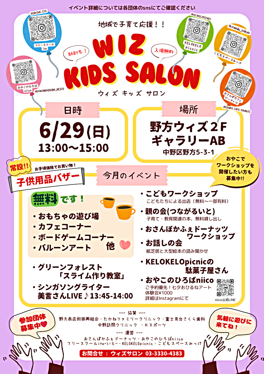 6月のウィズキッズサロンは、6月29日(日)に開催します。