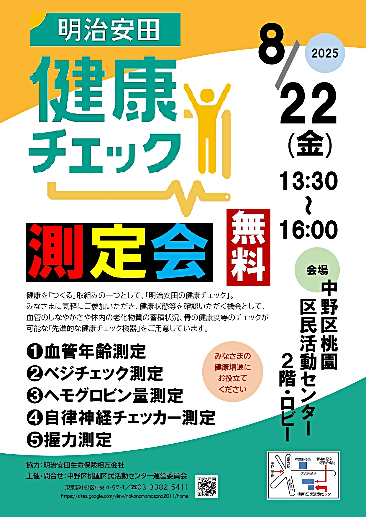 健康を「つくる」取り組みのひとつとして、みなさまの健康状状態などを確認いただく機会となる「明治安田の健康チェック」に、お気軽にご参加ください。血管のしなやかさや、体内の老化物質などの蓄積状況、骨の健康度などのチェックが可能な「先進的な健康チェック機器」をご用意しています。