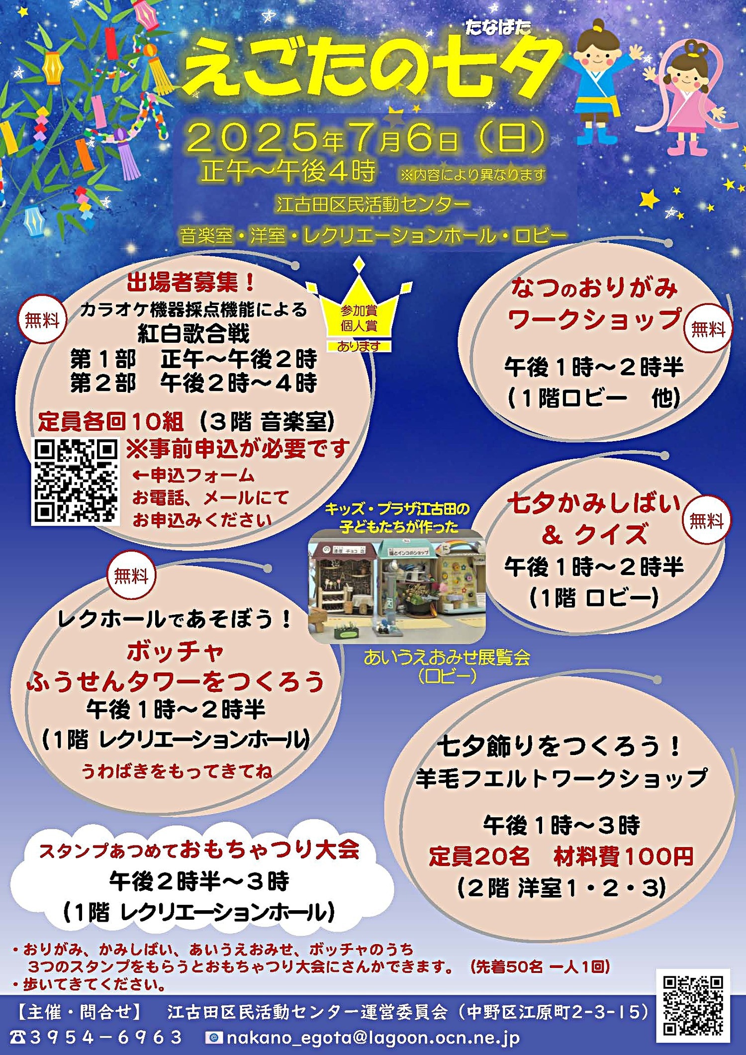 ※当日は江原2丁目ショッピング商友会の七夕祭り(午後4時~6時)も行われます。