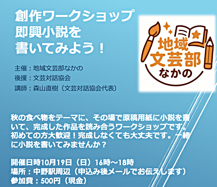 10月19日開催「即興小説を書いてみよう」