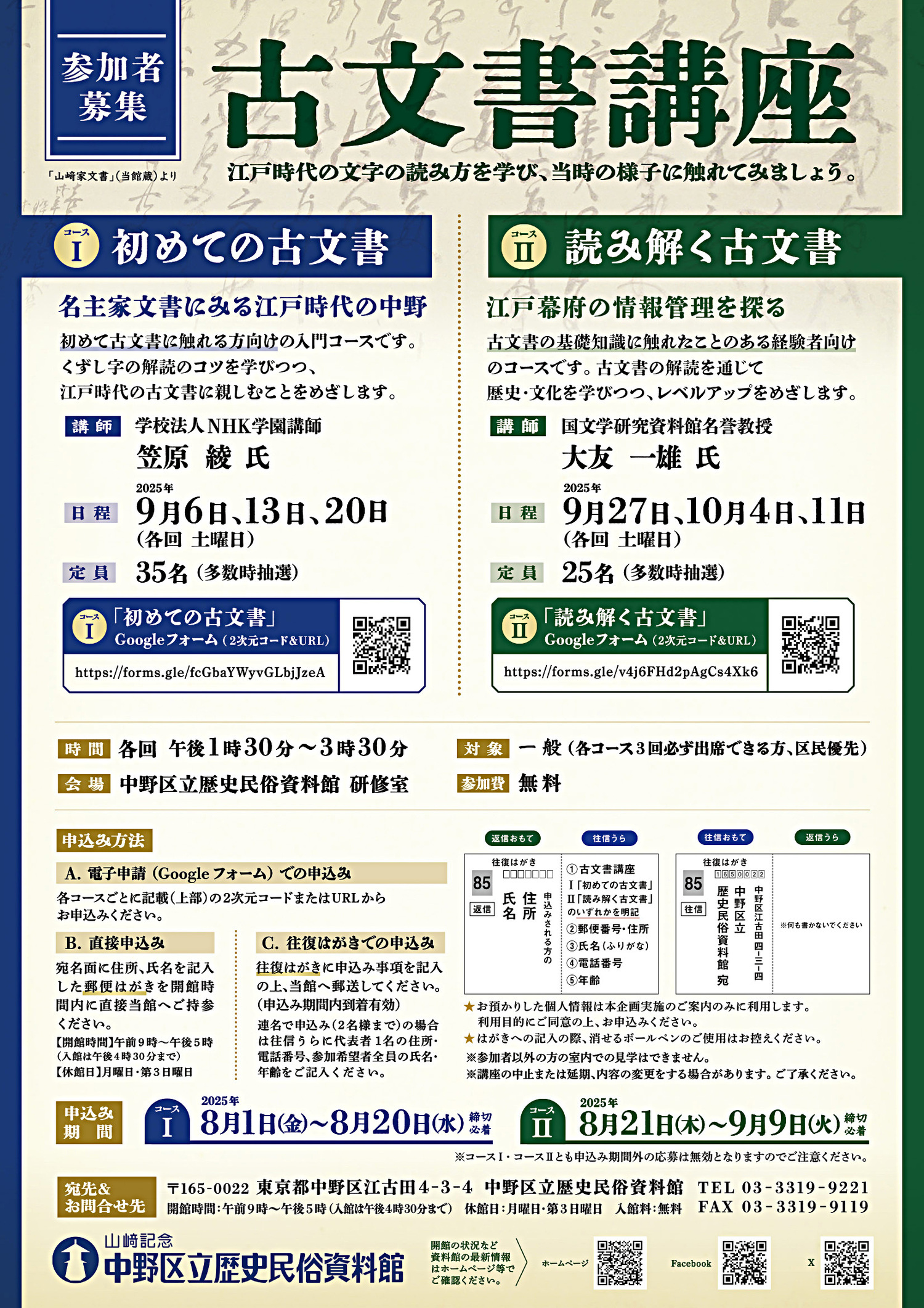 [日程] 2025年9月27日、10月4日、11日(各回 土曜日) 午後1時30分~3時30分