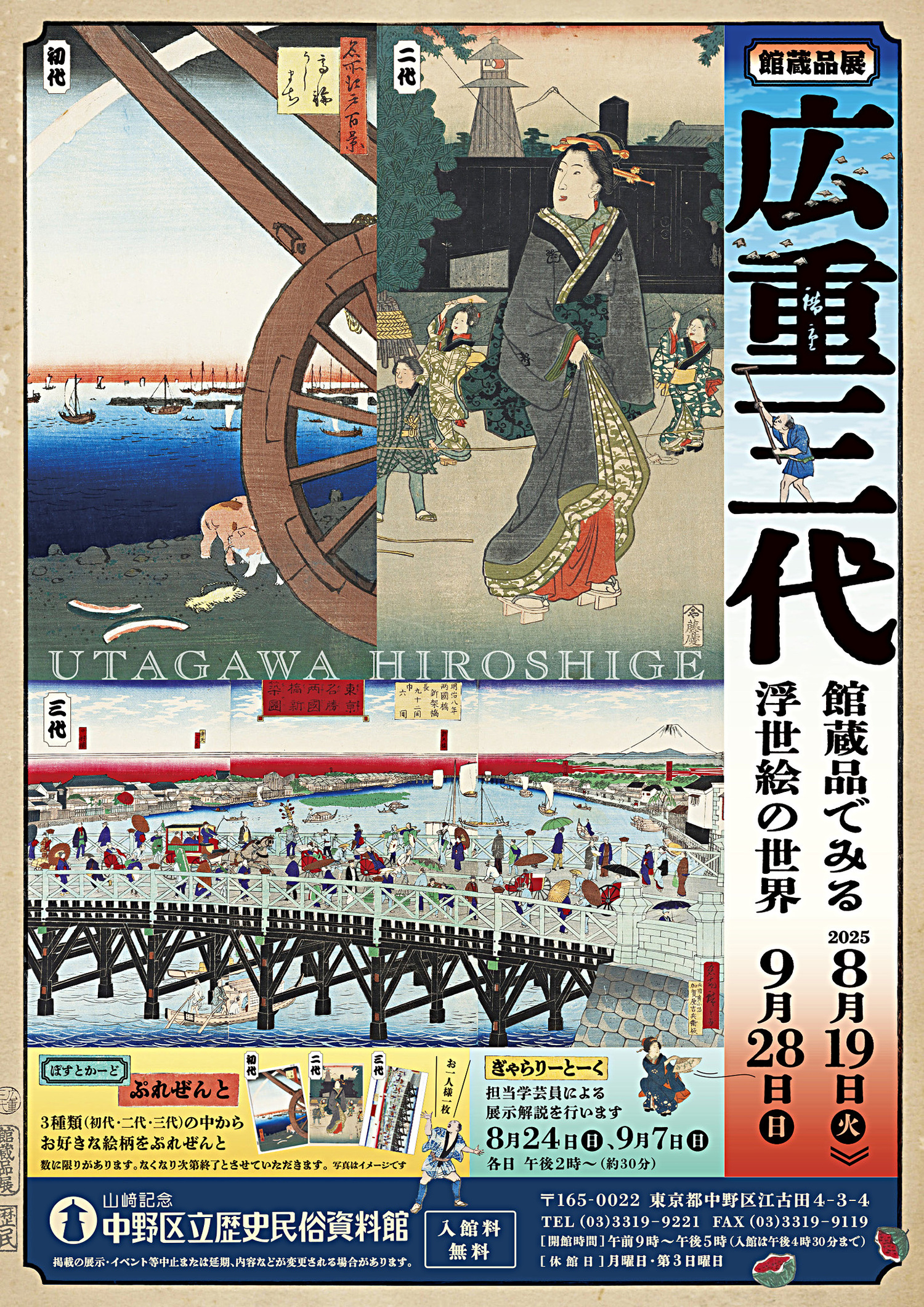 本展では、初代の弟子である二代目、三代目にも焦点をあて、「広重」三代の系譜を、館蔵品約70点でたどります。