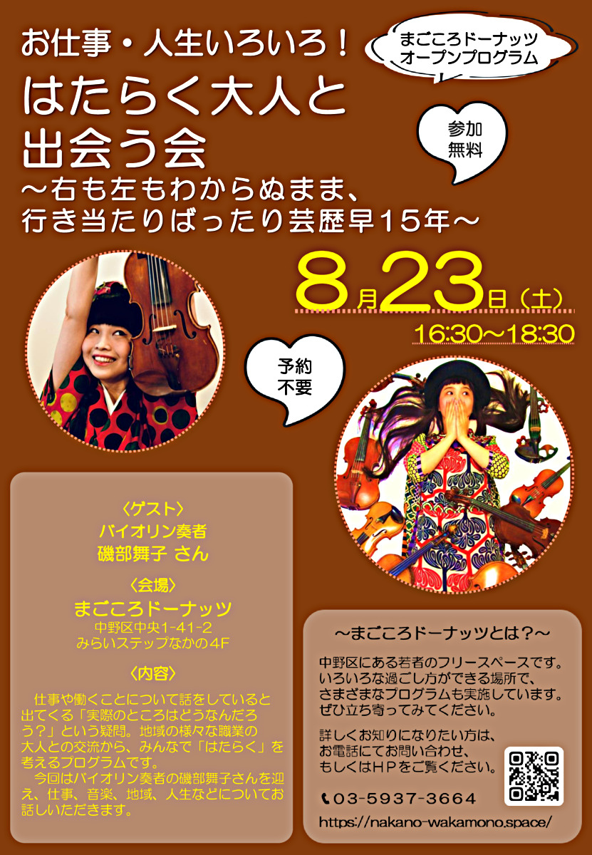 中野区若者フリースペース(中野区委託事業)まごころドーナッツのオープンプログラム(利用登録者でない方も参加できるプログラム)です!
