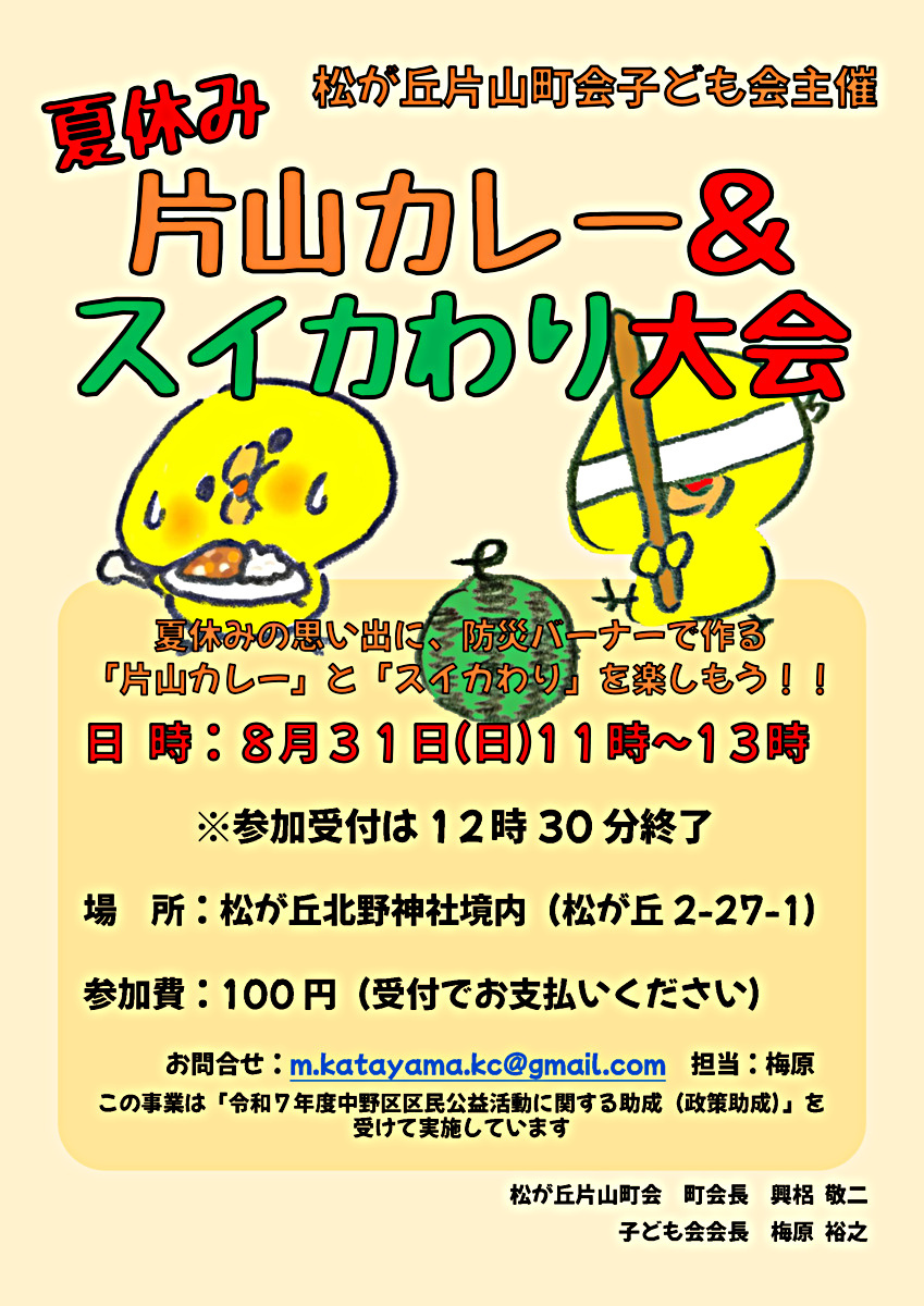 防災訓練の一環として、子ども会が町会、町会青年部と連携して開催するイベントです。