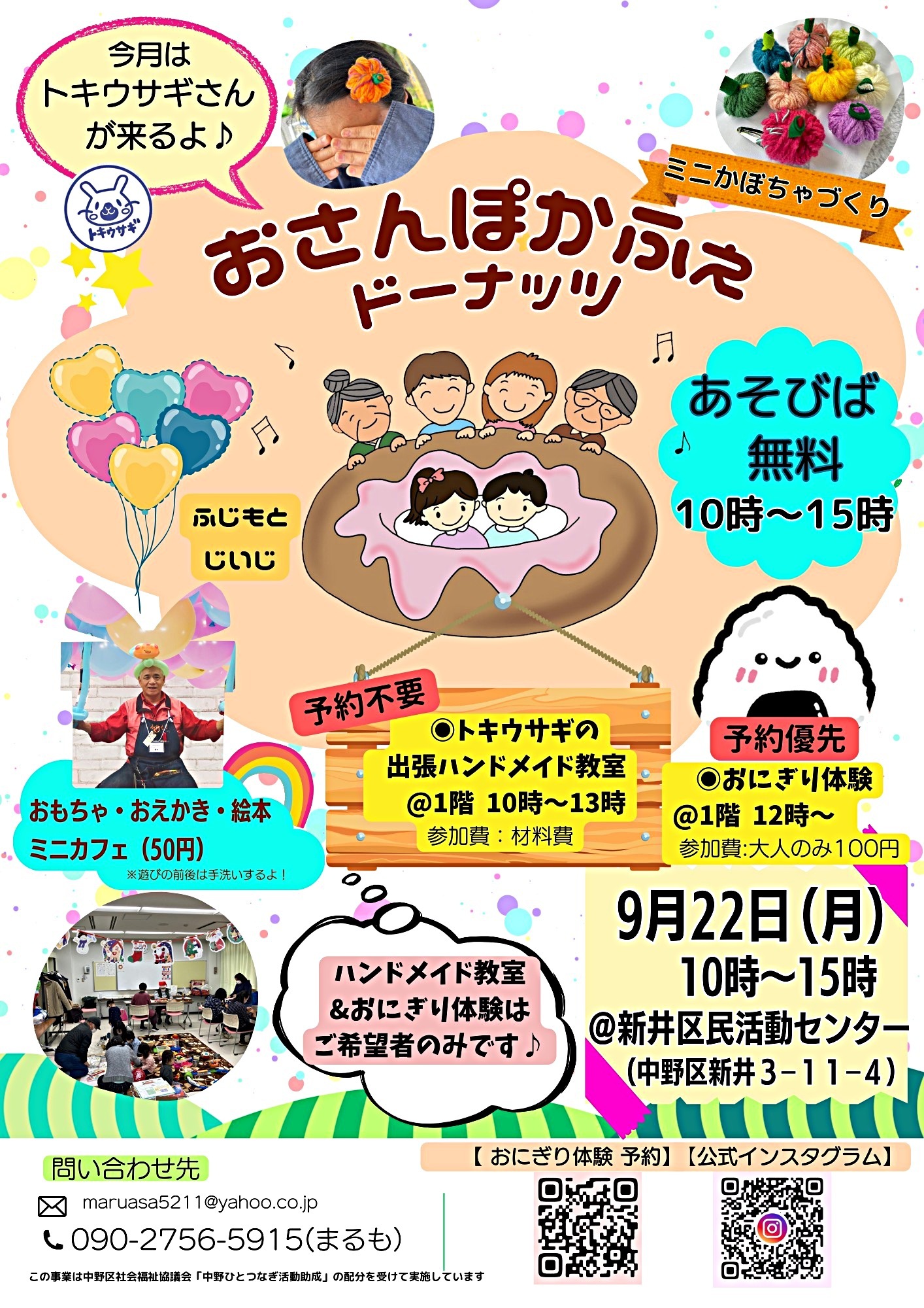 おにぎり体験、ハンドメイド教室共にご希望者のみ、おにぎり体験は予約優先になります🍙