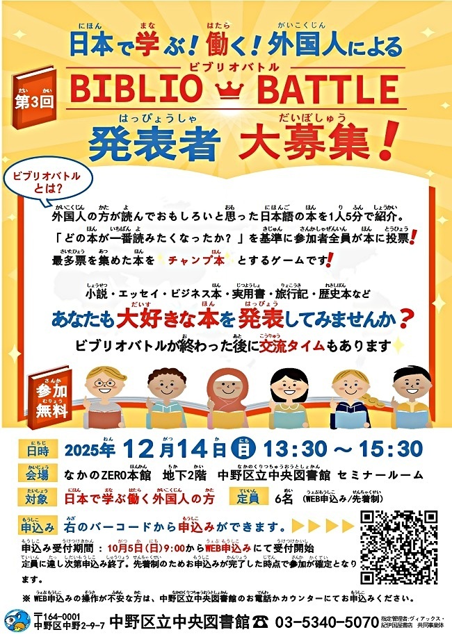 日本で学ぶ!働く!外国人によるビブリオバトル【発表者申込受付】