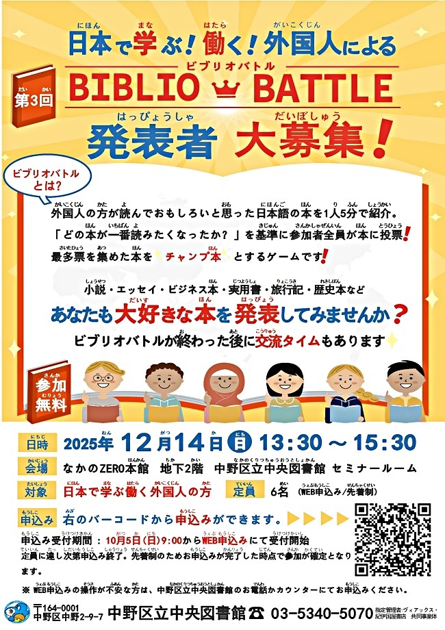 日本で学ぶ!働く!外国人によるビブリオバトル【発表者申込受付】 - ためまっぷなかの