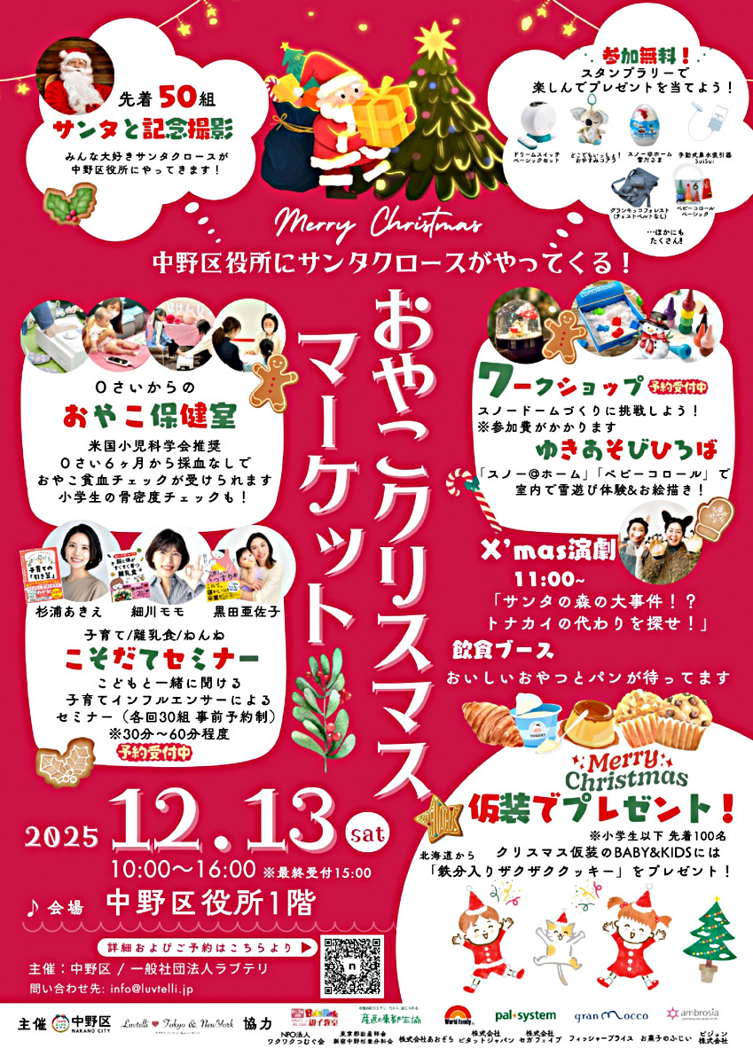 中野区長をはじめよっぴーさん、サイエンスコミュニケーターの黒ラブ教授、うんこの化石の研究者などのトークイベントに加えて、医療や福祉をテーマにしたアートの展示など盛りだくさん。