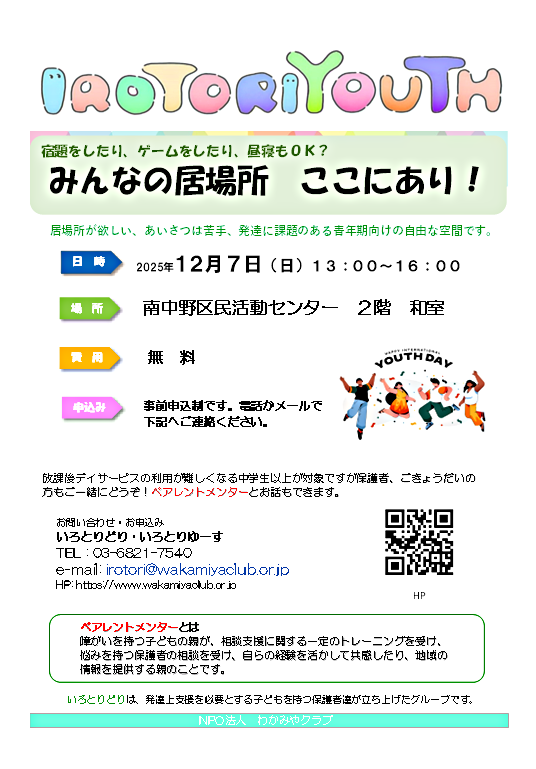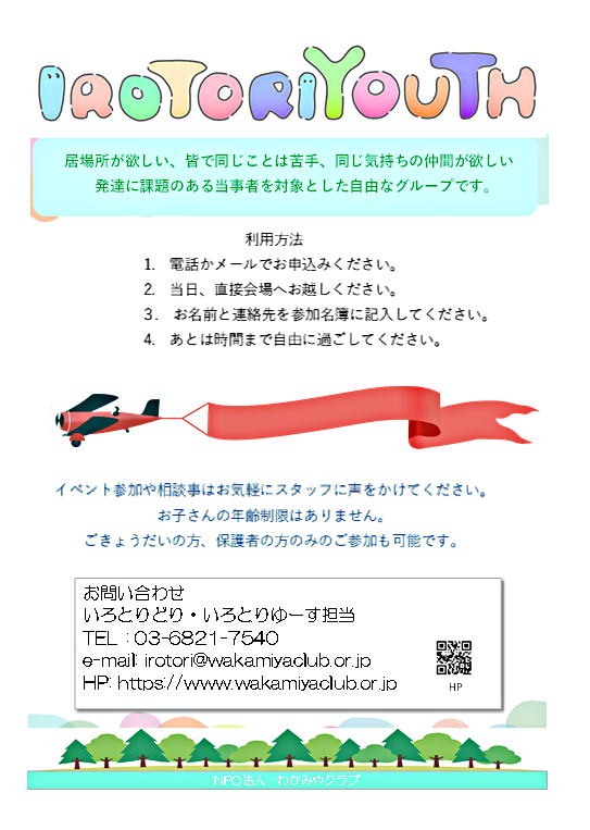 あいさつや、みんなと同じことをするのが苦手、自分のペースで過ごしたい・・・そんな思いの若者と家族のための居場所です。