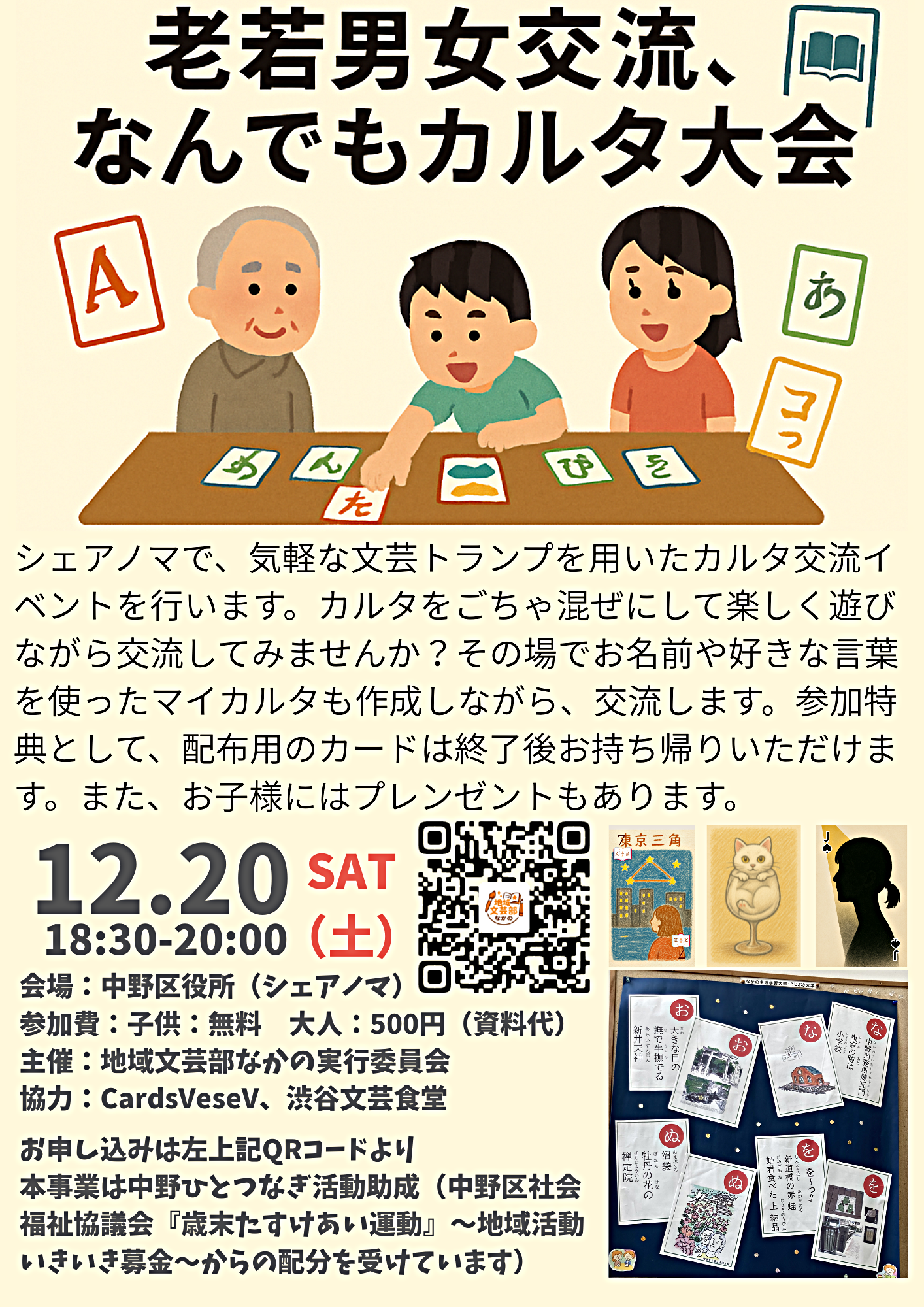 【概要】中野区役所のワークショップスペースであるシェアノマで、気軽な文芸トランプを用いたカルタ交流イベントを行います。