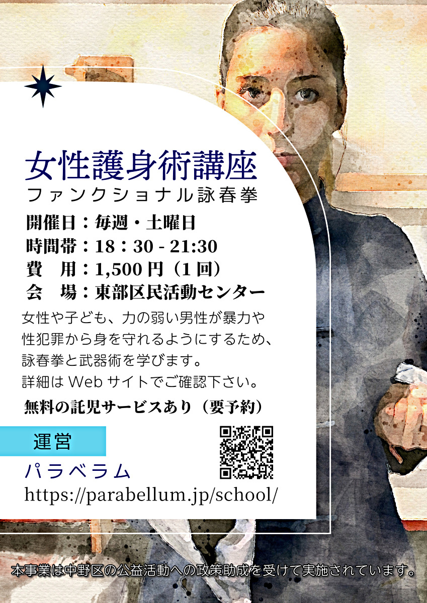 女性護身術(フェミニスト・セルフディフェンス)の通年開催の連続講座です。詳細はウェブサイトでご確認ください。