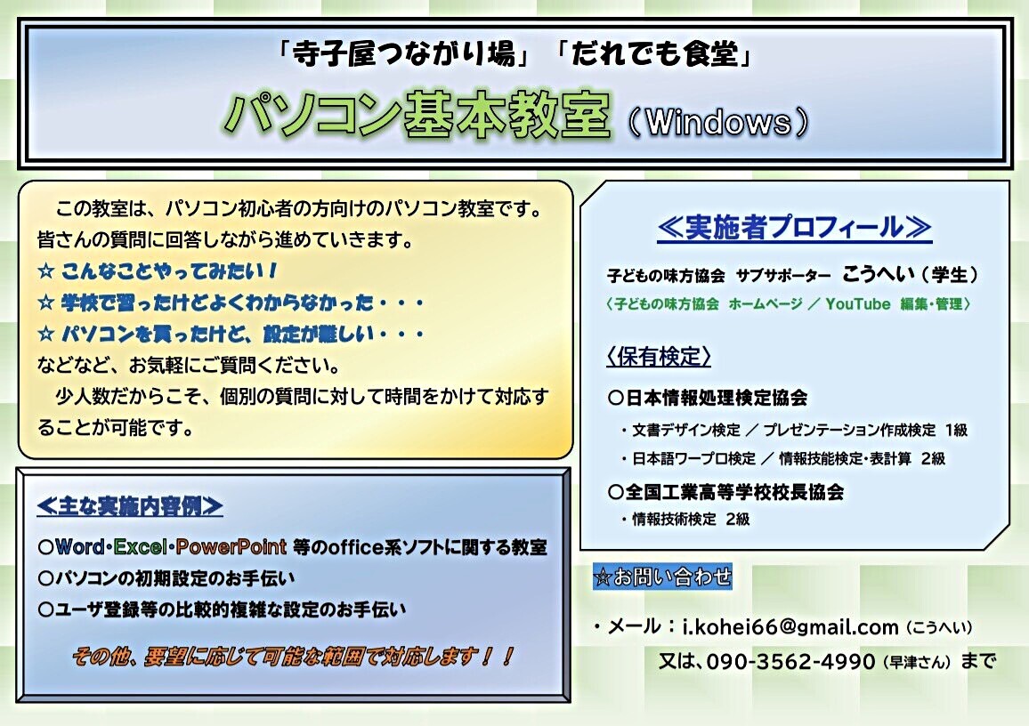 高校生以下の参加者とボランティア学生さんは100円大人は300円以上の参加費用をお願いします。