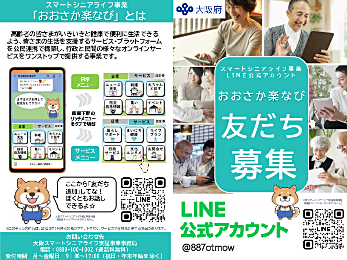 高齢者の皆さまがいきいきと健康で便利に生活できるよう、皆さまの生活を支援するサービス・プラットフォームを公民連携で構築し、行政と民間の様々なオンラインサービスをワンストップで提供する事業です。ぜひ友達登録してくださいね♪
