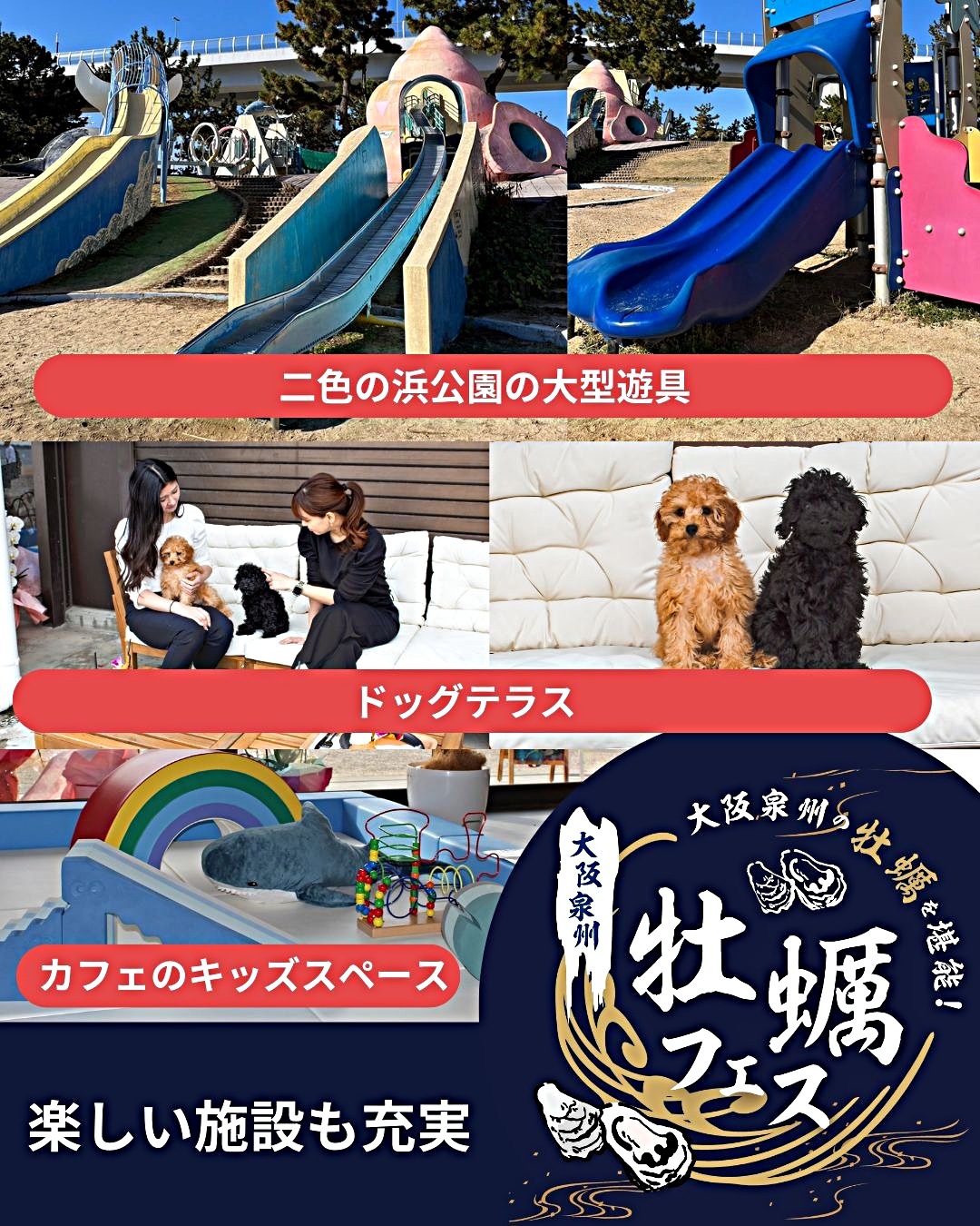 当日はwith二色マルシェウィンターフェスとして、牡蠣おでんや牡蠣味噌汁等、牡蠣にちなんだホットフードや牛串・たこ焼き等、合計11店舗が大集合!!さらにお子様が楽しめる縁日の出店や二色の浜公園自慢の大型遊具、カフェ内のキッズスペース等、お子様連れでも安心してお越し頂けますので是非ご家族でお越しください。
