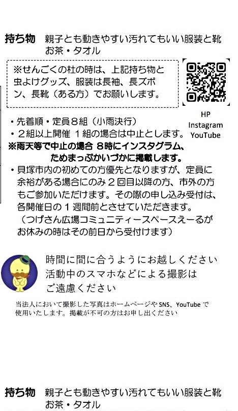 市外の方、申込みが2回目以降の方は、開催日の1週間前からお申込みいただけます。