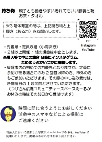 市外の方、申込みが2回目以降の方は、開催日の1週間前からお申込みいただけます。