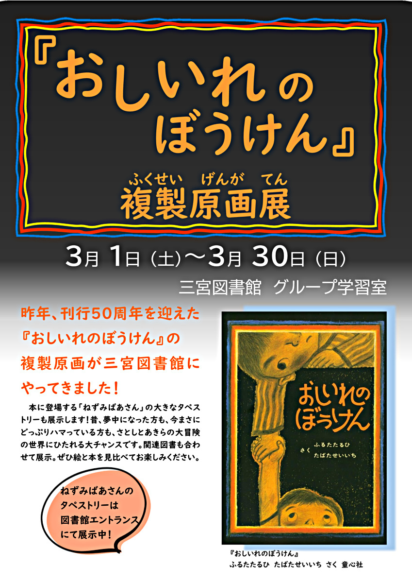 昨年、刊行50周年を迎えた『おしいれのぼうけん』の複製原画が三宮図書館にやってきました!