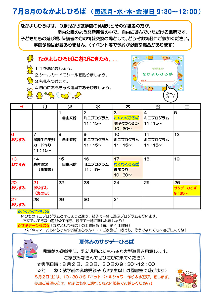 ぽかぽか体験保育(6か月~1歳半ぐらいのお子様)
