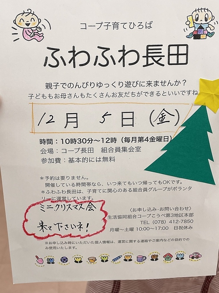 午前は10:00〜12:00午後は13:00〜16:00が開室の子育てひろばです。