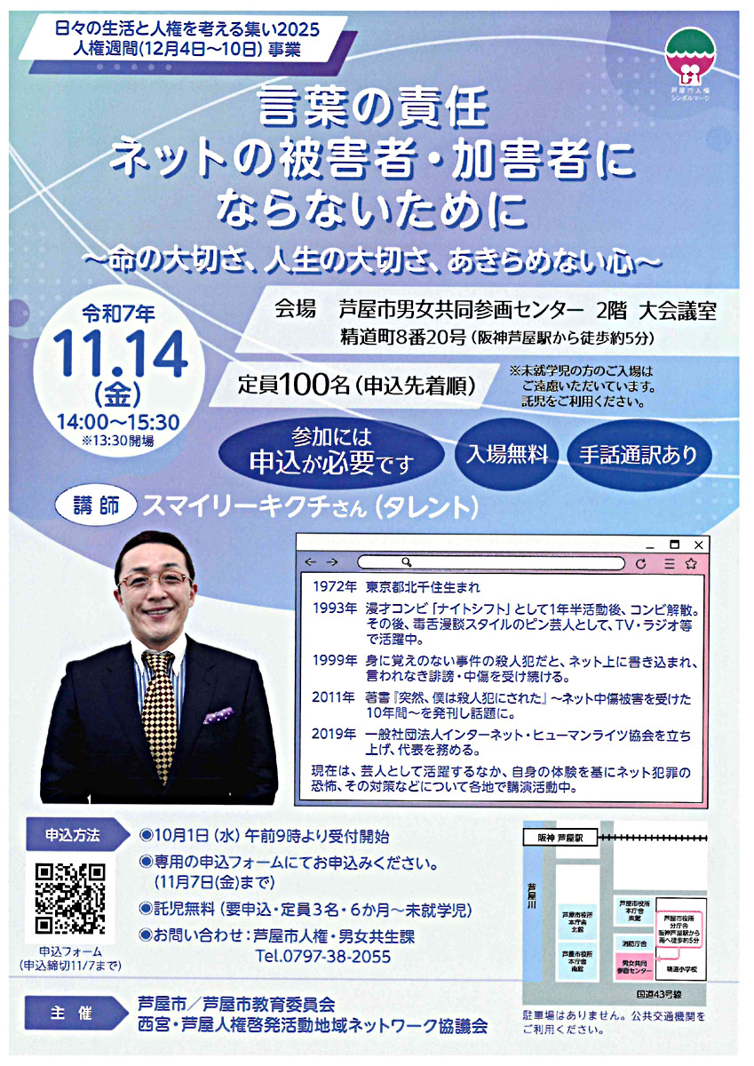 お問合せは芦屋市人権・男女共生課へ