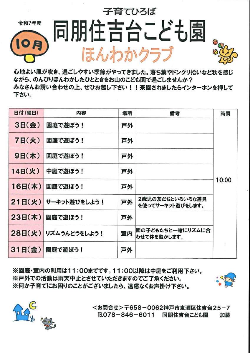 10月の園庭開放について