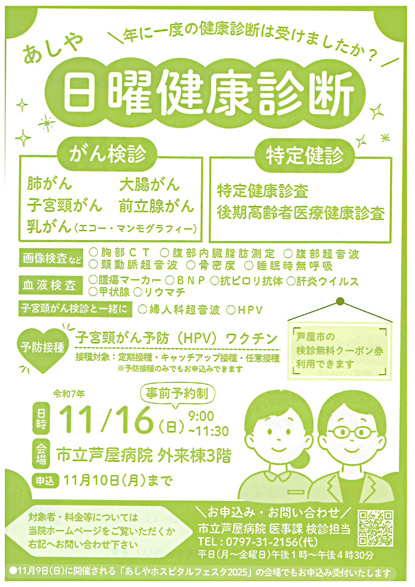 市立芦屋病院 医事課 検診担当