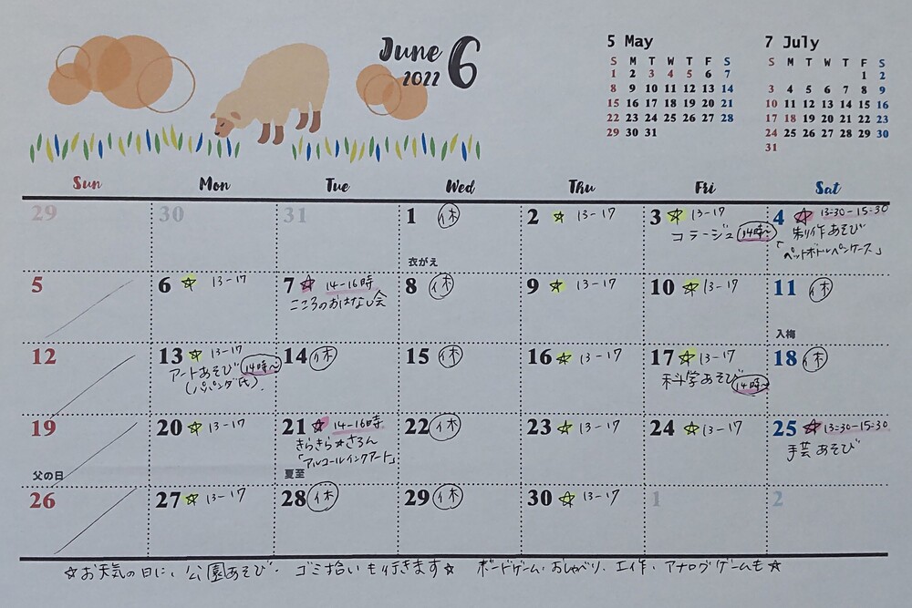 平日午後から 週に3日、こどもメインの居場所です。 どなた様も(大人の方も!)、お気軽に遊びに来て下さい! おしゃべり・ボードゲーム・工作・パズルや絵本タイム、多様な学び、地域交流やお散歩、お悩み相談もございます。 不登校、行きしぶり、ひきこもり、発達凸凹、HSP/HSC、場面緘黙、生きづらさのある方、また 子育て中のママさんのつどい場にも どうぞお気軽にご参加下さいね(*^^*)