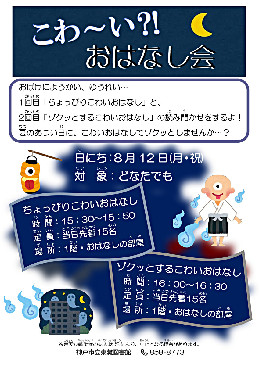 1回目「ちょっぴりこわいおはなし」と2回目「ゾクッとこわいおはなし」の内容は異なります。