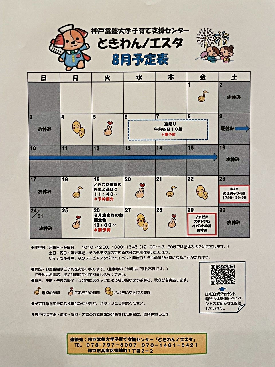 ときわんノエスタ8月の予定表です。