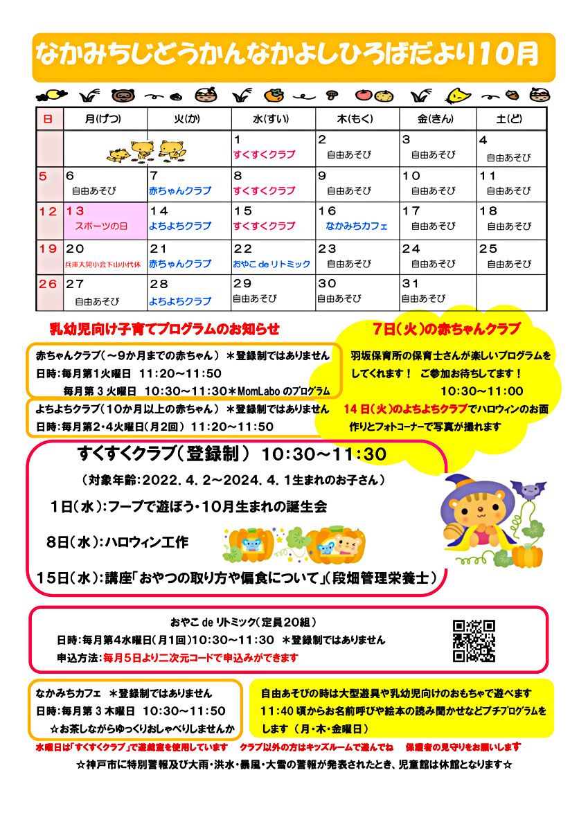 赤ちゃんとママ&パパのための赤ちゃんくらぶ(10月開催)