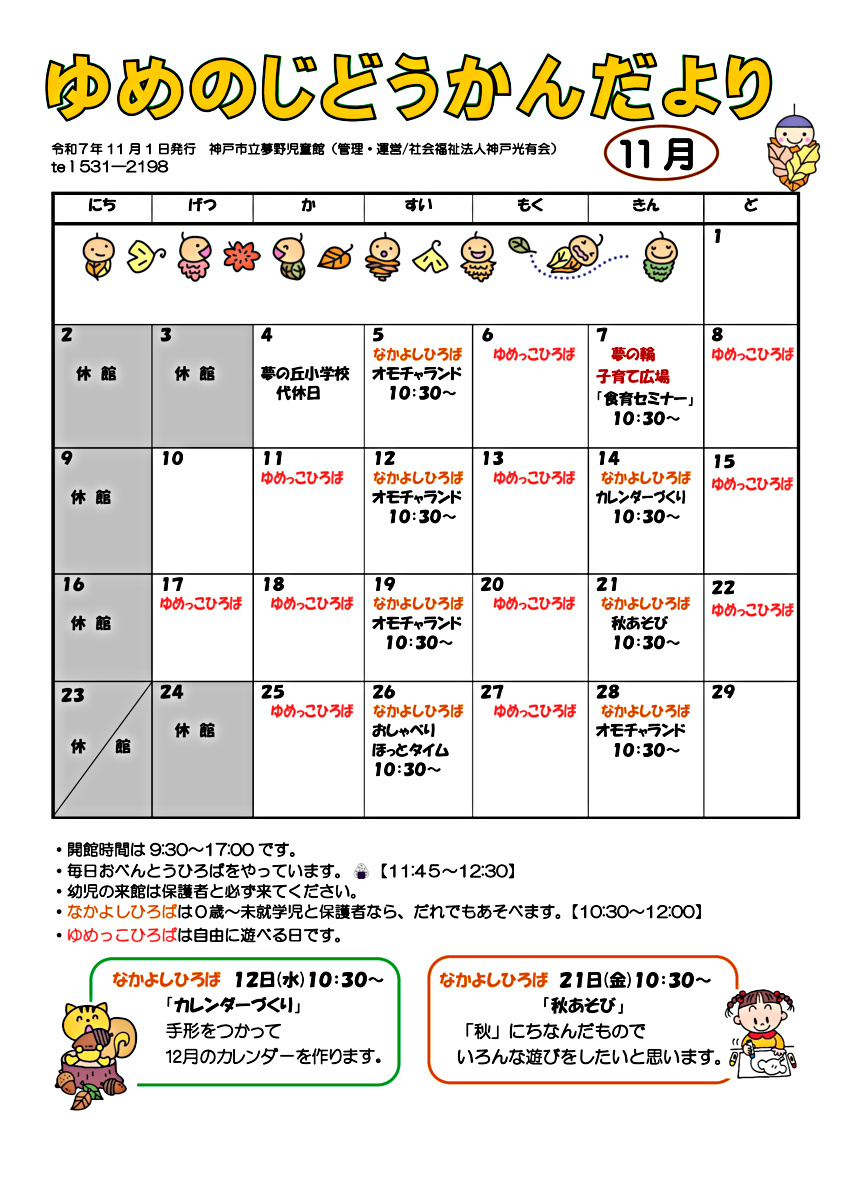 急に季節が進み、ひんやりとしてきましたね。寒さに負けず今月も元気いっぱい遊びましょう♪