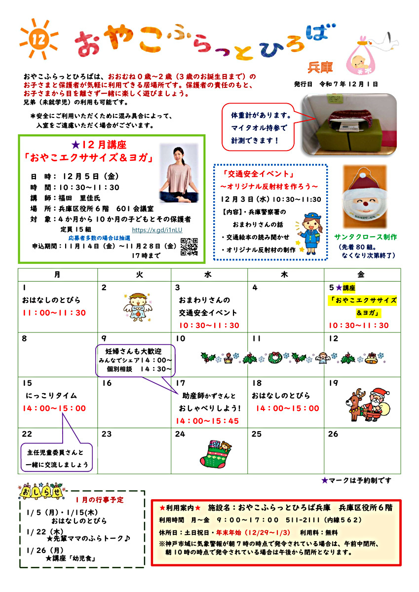 段々と寒くなり気ぜわしい季節ですが、ふらっと遊びにいらしてください。サンタクロース制作もスタートします。だるまさんのフォトコーナーもあります!
