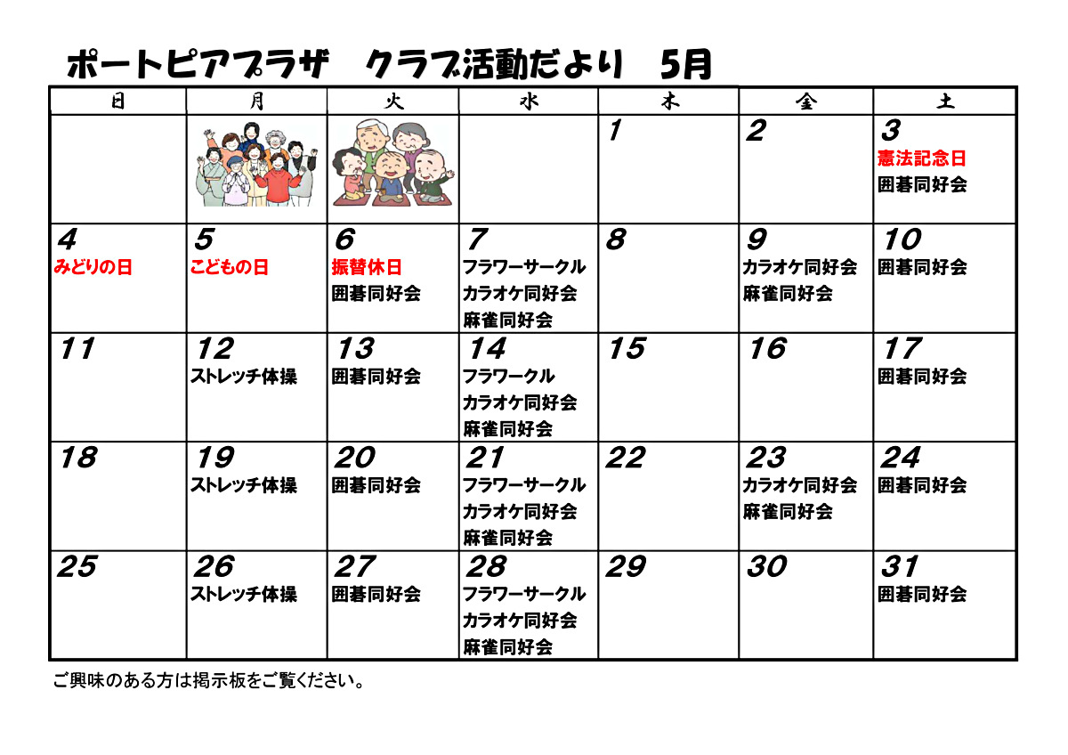 ポートピアプラザ クラブ活動だより 5月 | イベント情報